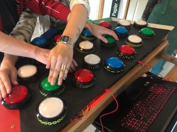 Originally made for an alternative controller we built, this version is playable on a keyboard. You all can play on a single keyboard, or plug another one to experience less physical contact with the other players!